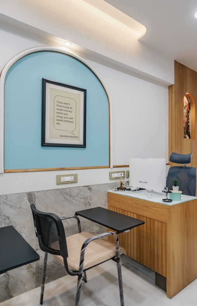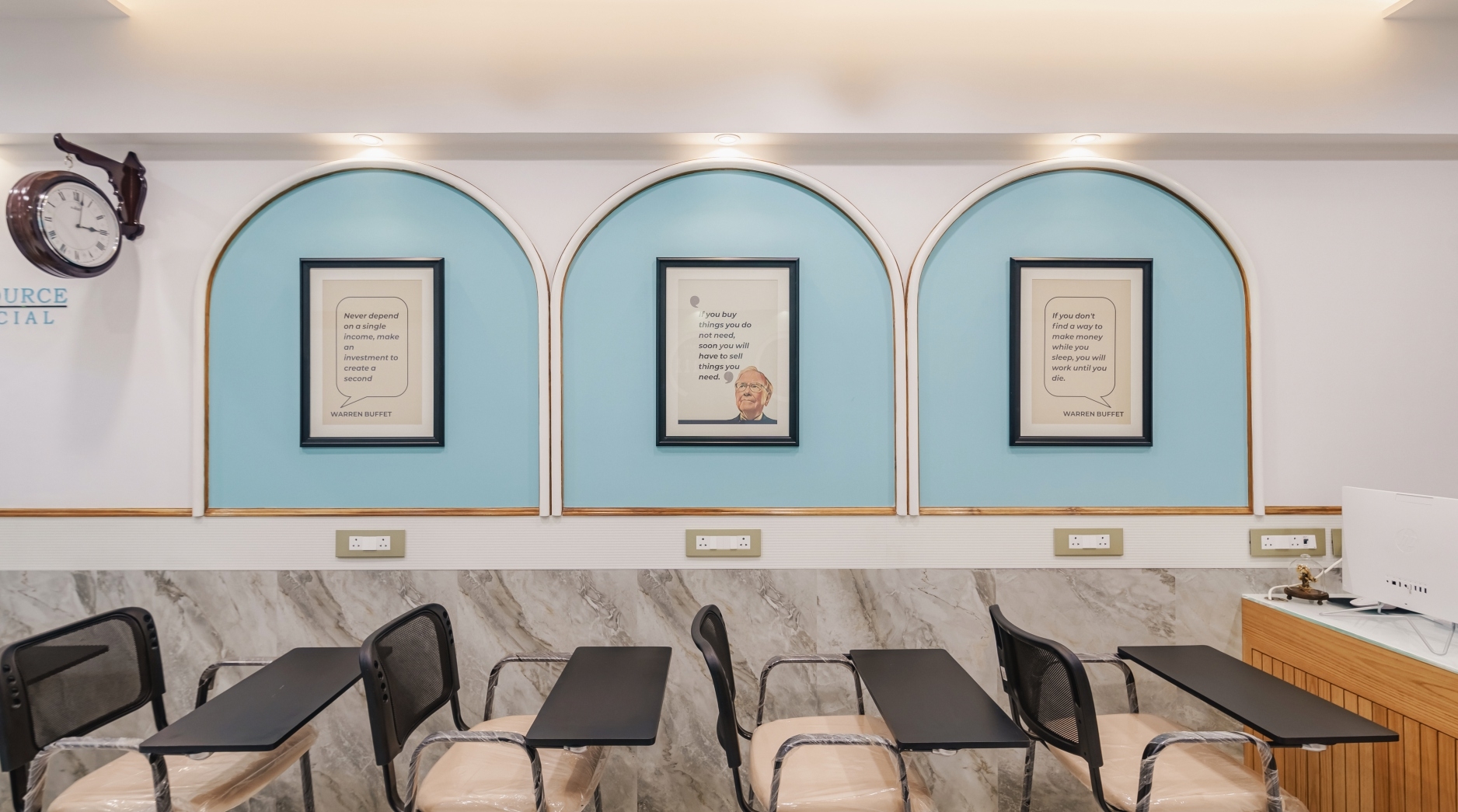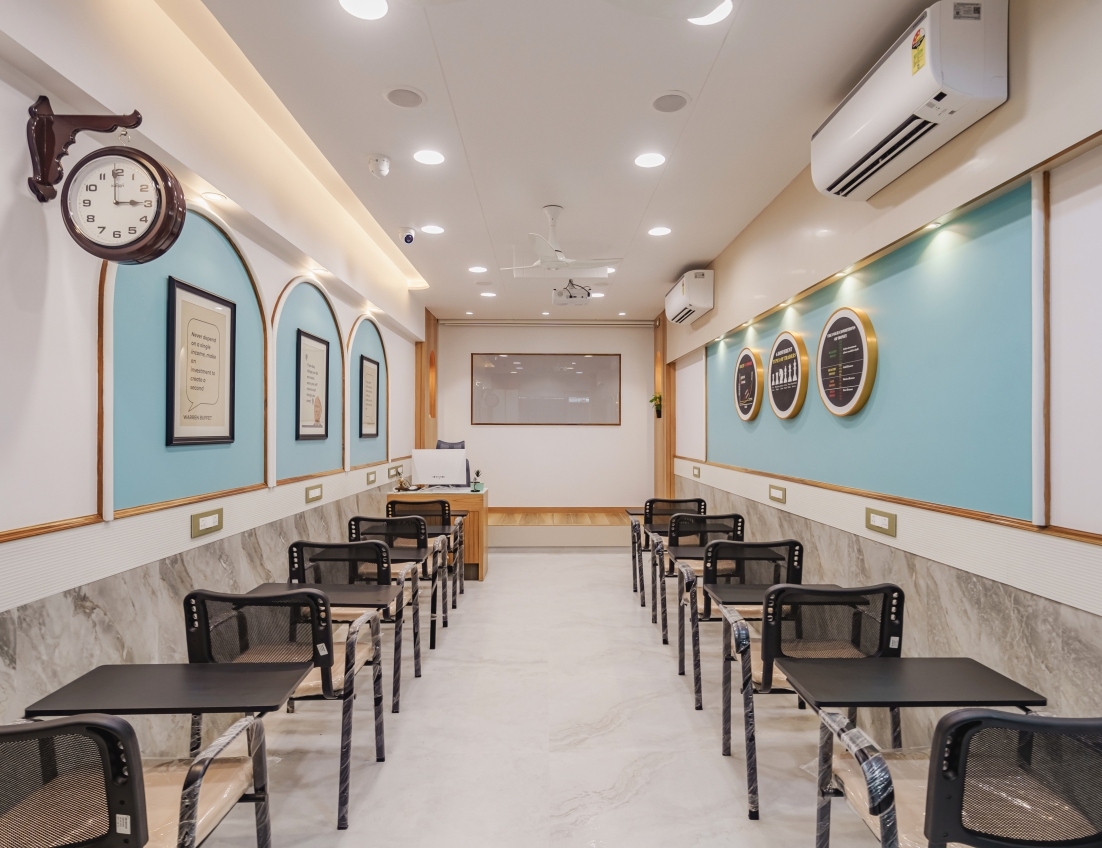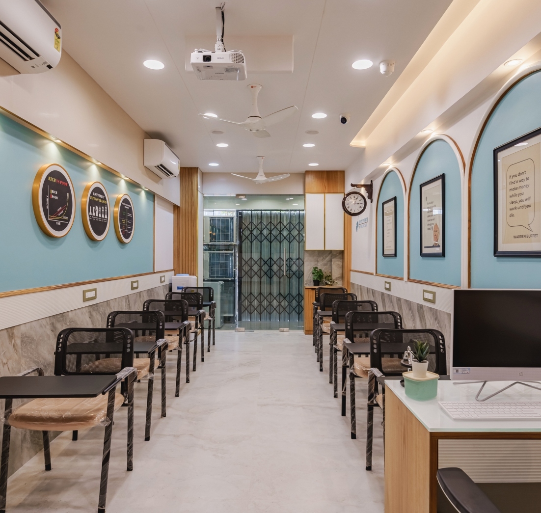 This commercial space serves as a training center designed for young professionals preparing for the Mutual Fund Distributor exam.